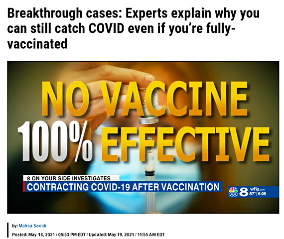 COVID-19ワクチンにおいても、ワクチン接種を完全に終えた人が新型コロナウイルスに感染する「Breakthrough Cases (ブレークスルー感染)」の症例が確認されており、CDCのWebsiteでも、この事についての記載があります。