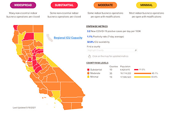 南カリフォルニアでは現在(5月18日更新)、ロサンゼルス・カウンティとオレンジ・カウンティのみがYellow Tierとなっておりますが…