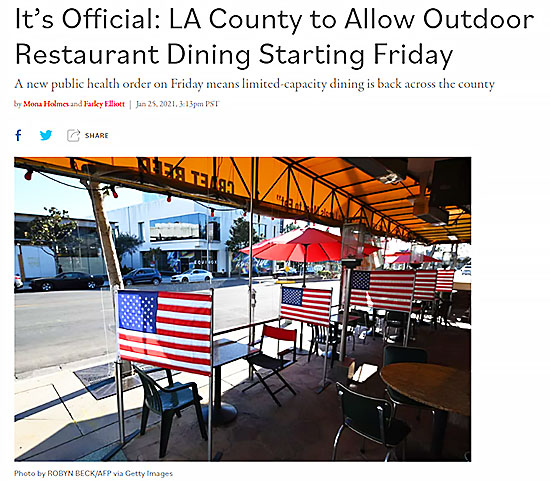 明日金曜日より、ロサンゼルス・カウンティのレストランの屋外飲食が再開されます。