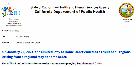 月曜日(1月25日)に解除となった「Regional Stay at Home Order」。