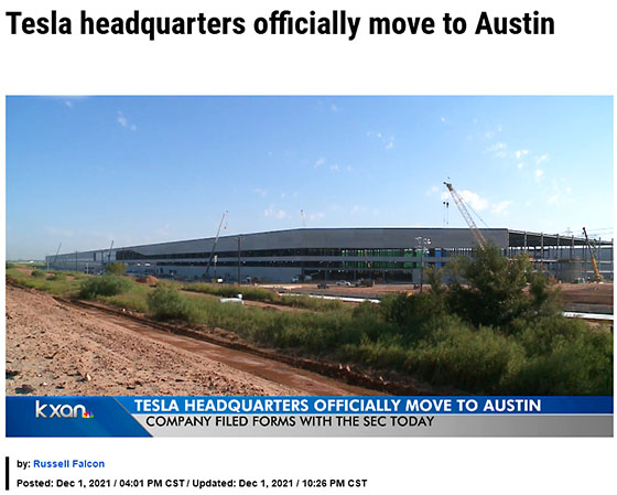 そして同年12月1日にTESLAが米証券取引委員会に届出をした事で、テキサス州オースティンへ本社が正式に移転となりました。