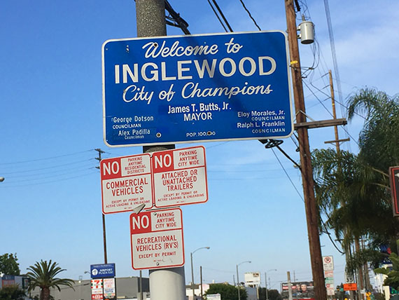 Super Bowlが開催されるSoFi Stadiumがあるイングルウッド市。