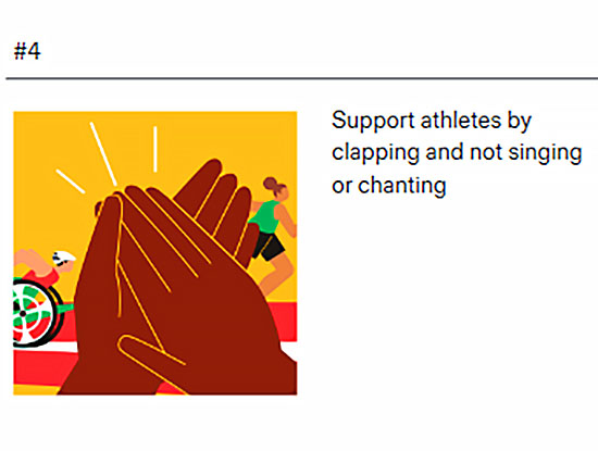 またアスリートの応援においては「拍手」で行うようにとされ、「応援コール」や「応援歌」などは自粛するようにとの事。