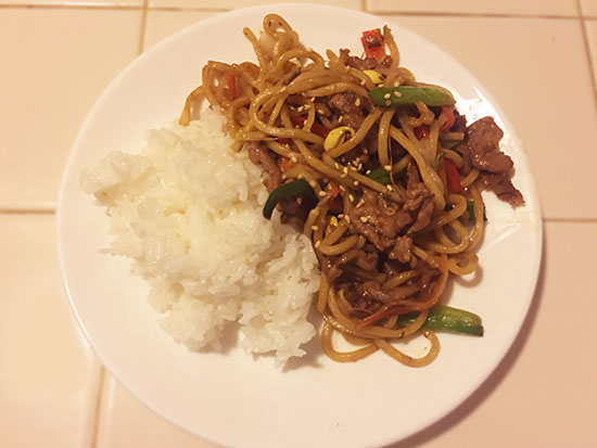 焼きそばをおかずに白米を食します♪