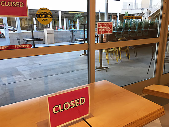日系スーパー周辺のレストランも、屋外パティオが撤去されTake outのみに…