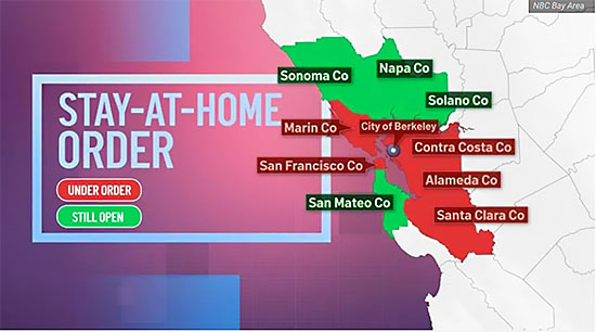 またベイエリアにおいては、地域全体の集中治療室の空き容量は現時点で15%を下回っておりませんが、NBC BAY AREAによれば、ベイエリアの6つの管轄地域(サンフランシスコ、サンタクララ、マリン、コントラコスタ、アラメダの各郡、及びバークレー市)においては独自の自宅待機命令が発出されており、2021年1月4日まで続くとされています。