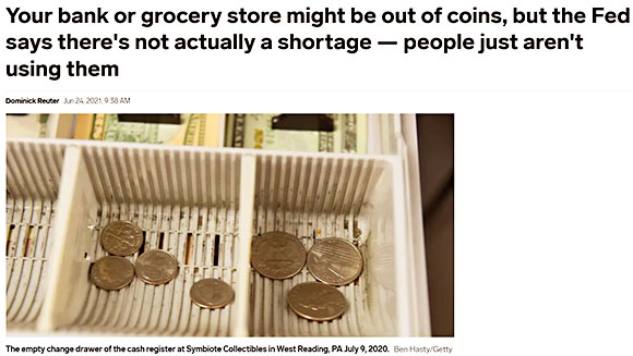 しかしFederal ReserveのWebsiteによれば、2020年6月以降、米国造幣局は硬貨の生産をフル生産能力で稼働しており、2020年は2019年に比べ24%増産されたとの事なので硬貨は不足していないはずなのですが…