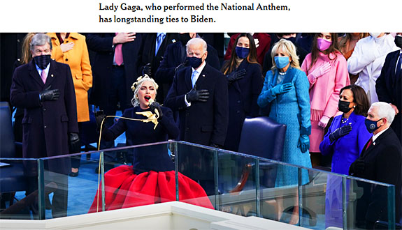 個人的にこの就任式で最も心動かされたのは、Lady GagaのNational Anthem斉唱でした。