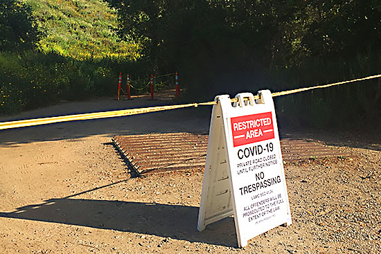 私のランニングコースの近くにトレイルがあるのですが、そのトレイルも5月8日のReopen前まではこのように黄色いCaution Tapeで入口が閉鎖されていました。