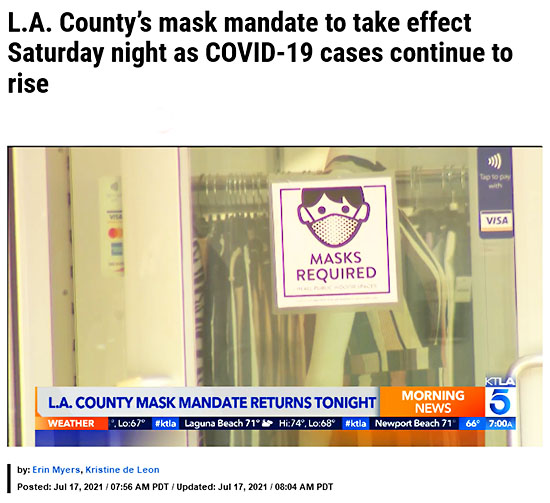 LAカウンティでは今晩(7月17日)より、公共やビジネスの屋内施設におけるマスク着用が再び義務化されます。