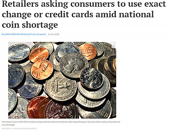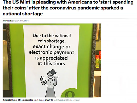 その数日後、アメリカが全国的な硬貨不足にある事をニュースで知りました。
