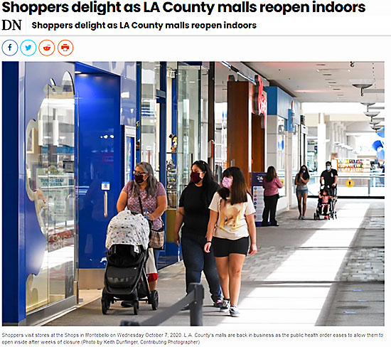 そして今週は、水曜日(10月7日)にロサンゼルス・カウンティのショッピングモールの屋内での営業が再開となりました。