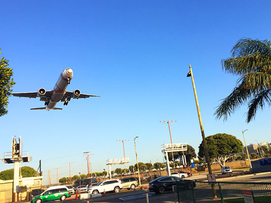 LAX(ロサンゼルス国際空港)の目の前に構えられたこちらの店舗は、飛行機のファイナルアプローチコースの真下に位置するため迫力のエンジン音を体験する事が出来ます。
