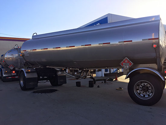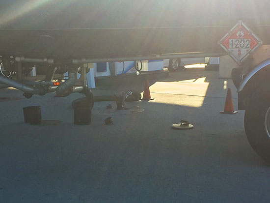 ところで先日、ガソリン積載トラックによるガソリンスタンドへの給油作業に遭遇しました。
