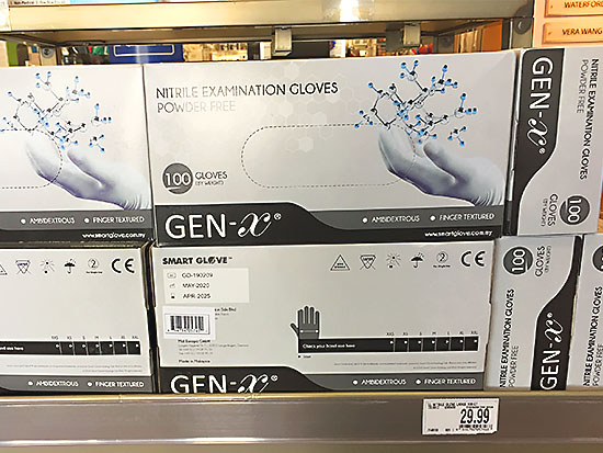 マスクは20枚で$19.99、使い捨て手袋は100枚で$29.99…wow