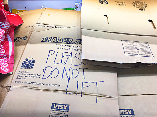 冷凍食品エリアの一時的な電気故障により、冷気が逃げないよう「Please do not lift」の表示と共にダンボールで覆われていました。