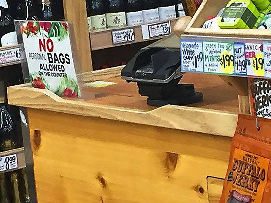 No personal bags allowed on the counter.