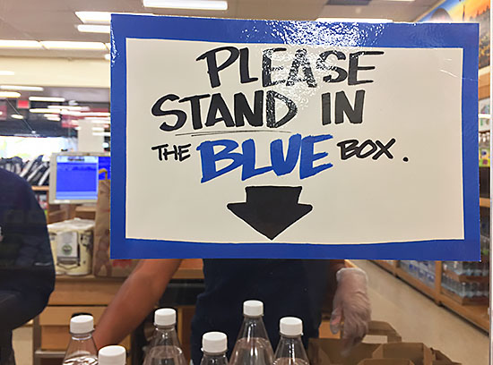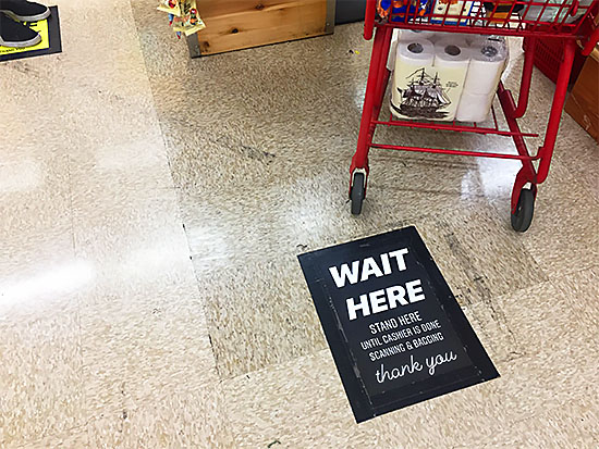 Wait here. Stand here until cashier is done scanning & bagging.
