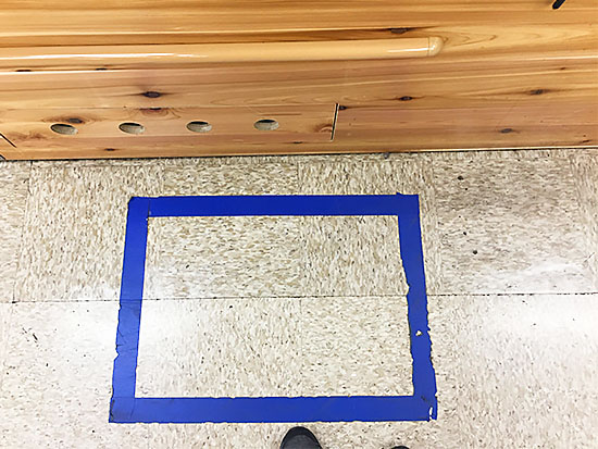 Please stand in the blue box.