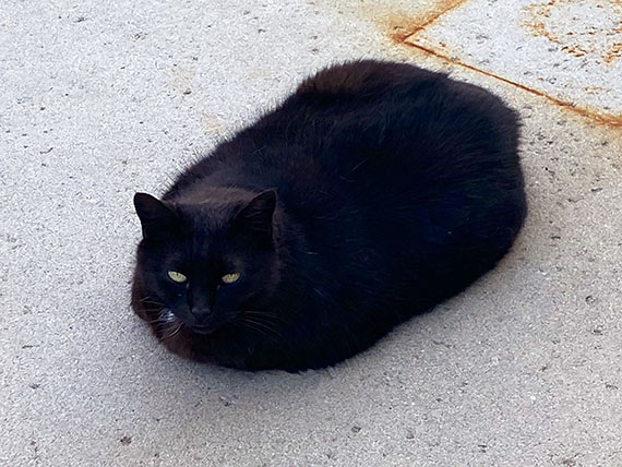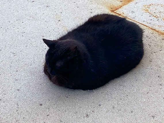 昼寝を邪魔された黒猫さん、上から覗き込む私に全く動じる事のない貫禄の表情。